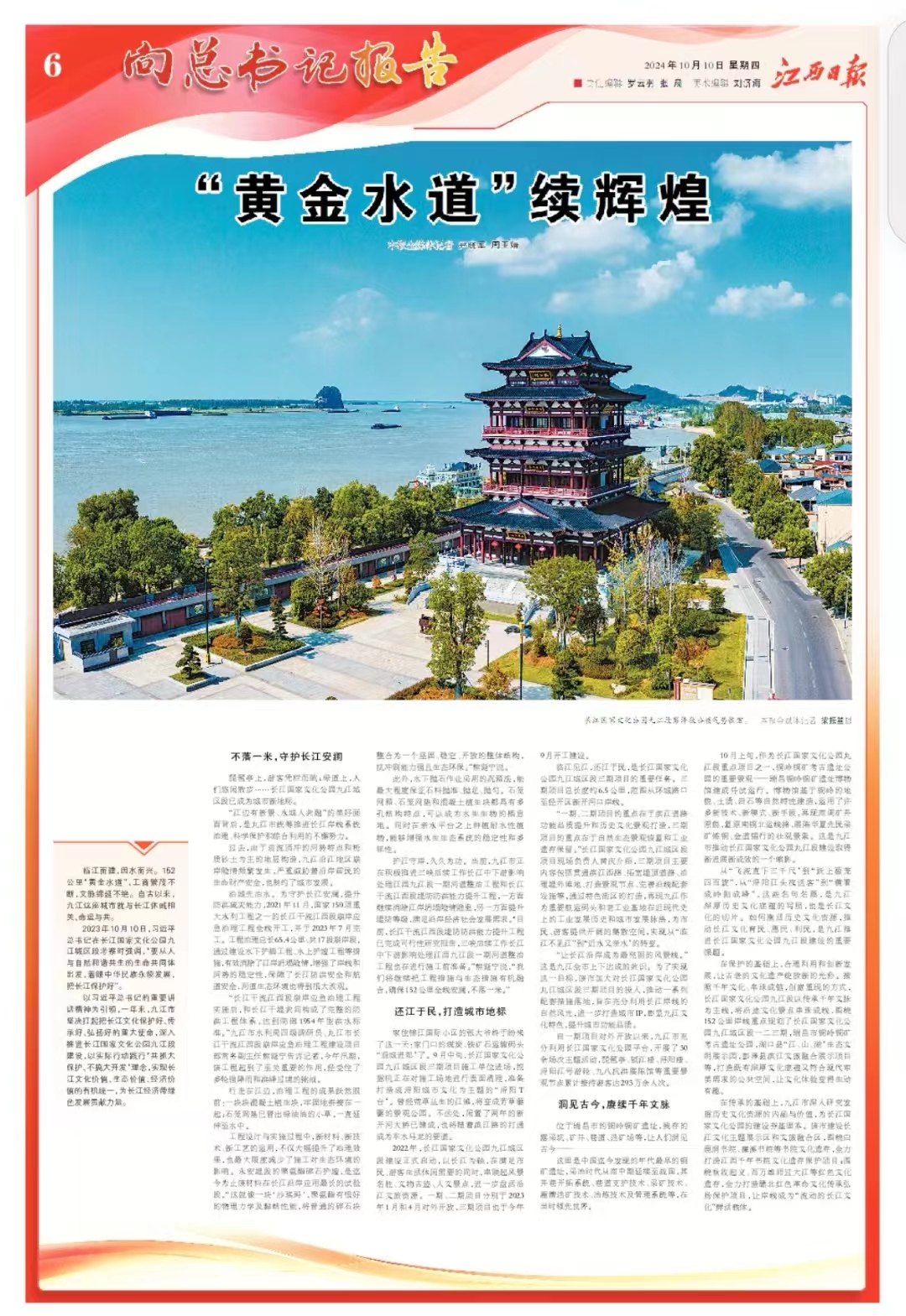 10月10日,《人民日报》整版专题报道《江西九江:高标准高质量建设长江经济带重要节点城市》