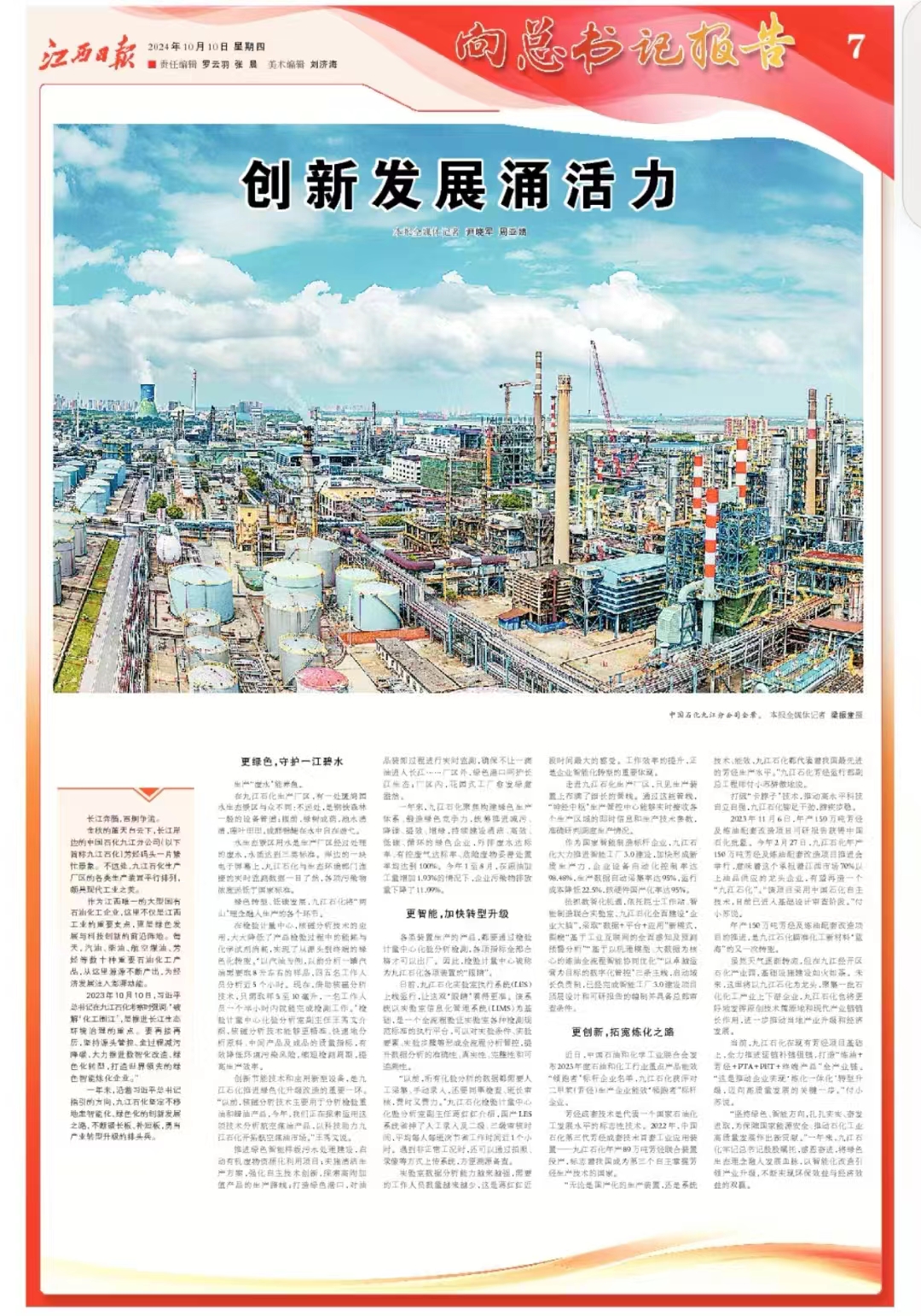 10月10日,《江西日报》特别策划《向总书记报告》中2个整版《“黄金水道”续辉煌》《创新发展涌活力》