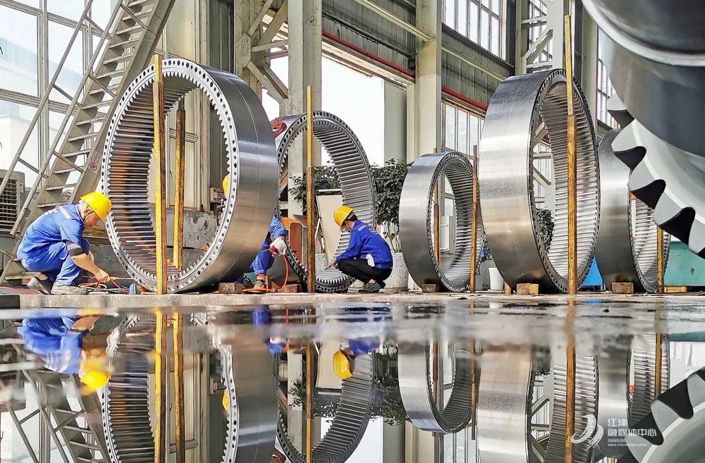 ▲江津拥有世界第一大型工业齿轮重齿齿轮。图为重庆齿轮箱有限责任公司工人正在作业 通讯员 贺志付 摄