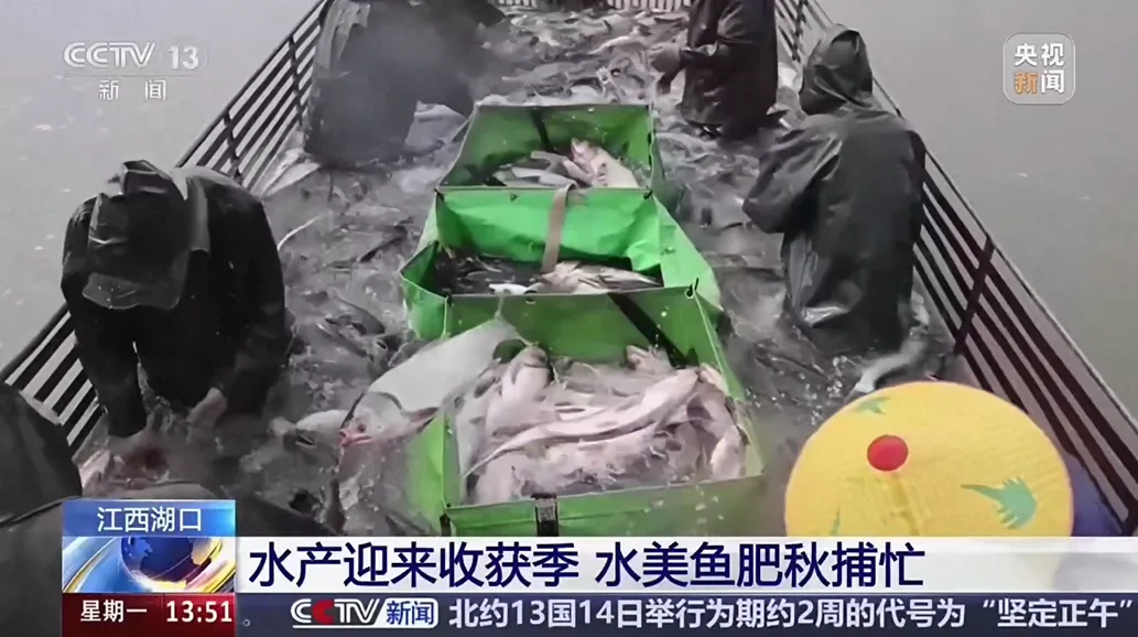 10月14日,央视《新闻直播间》栏目播出《江西湖口 水产迎来收获季 水美鱼肥秋捕忙》,报道九江市湖口县水产场迎来丰收季,渔民们忙着秋捕,将鲜鱼发往全国各地。人放天养的原生态养殖模式实现了经济效益和生态效益的有机统一。