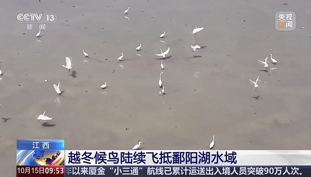 10月15日,央视《新闻直播间》栏目播出《江西 越冬候鸟陆续飞抵鄱阳湖水域》,报道鄱阳湖陆续迎来大批越冬候鸟,在湖口鞋山水域以及南北港等内湖水面,呈现人与自然和谐共生的美好生态画卷。
