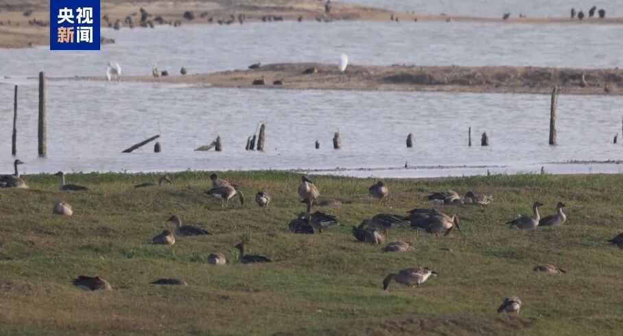 鄱阳湖马影湖连续多年是越冬候鸟抵达鄱阳湖的第一站。都昌县义务护鸟员在巡护时发现,大雁、斑嘴鸭、白琵鹭、白枕鹤、灰鹤、小天鹅等候鸟已成群飞抵。它们或是在草地,或是在水面,时而歇脚停顿、时而觅食嬉戏,成为鄱阳湖区一道亮丽的风景线。