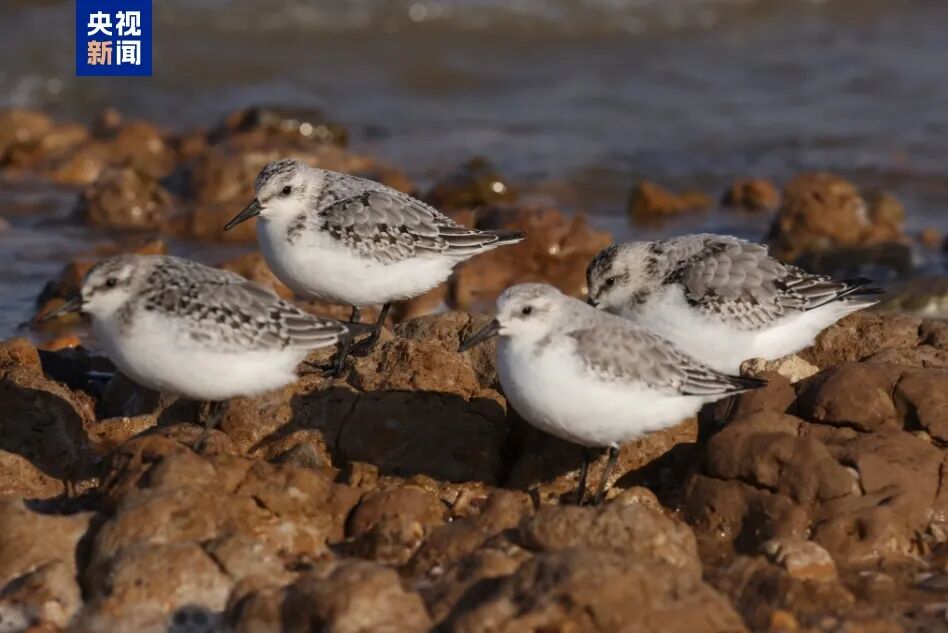 随着天气转冷,飞抵江西鄱阳湖水域的候鸟逐渐增多。近日,鄱阳湖九江都昌水域地首次监测到4只三趾滨鹬。