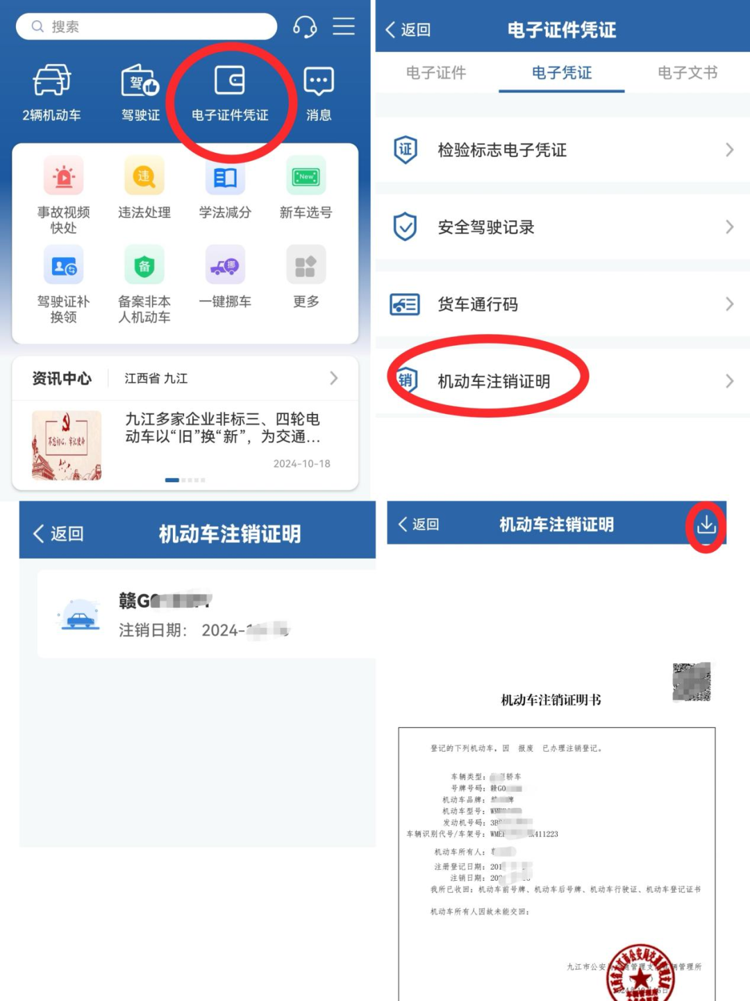 3、登记地车管所审查无误后,出具《机动车注销证明书》,车主本人可登录“交管12123”APP直接下载。(免费办理)