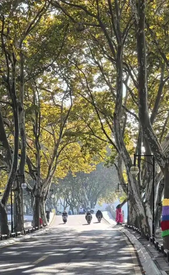 两旁的法国梧桐就像一条金黄色的腰带,