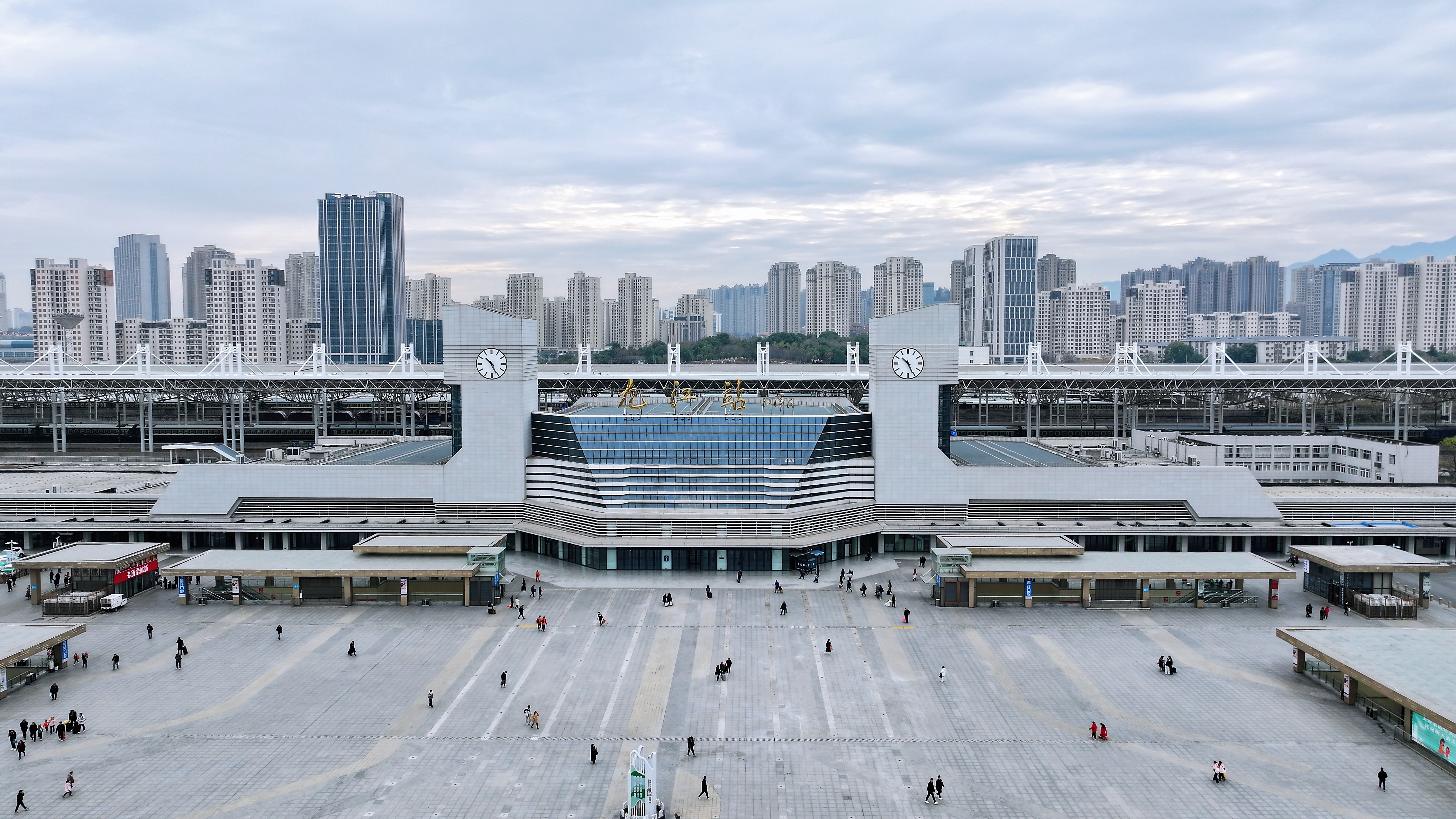 九江火车站广场上,旅客川流不息。(九江日报全媒记者 杨罗军 摄)
