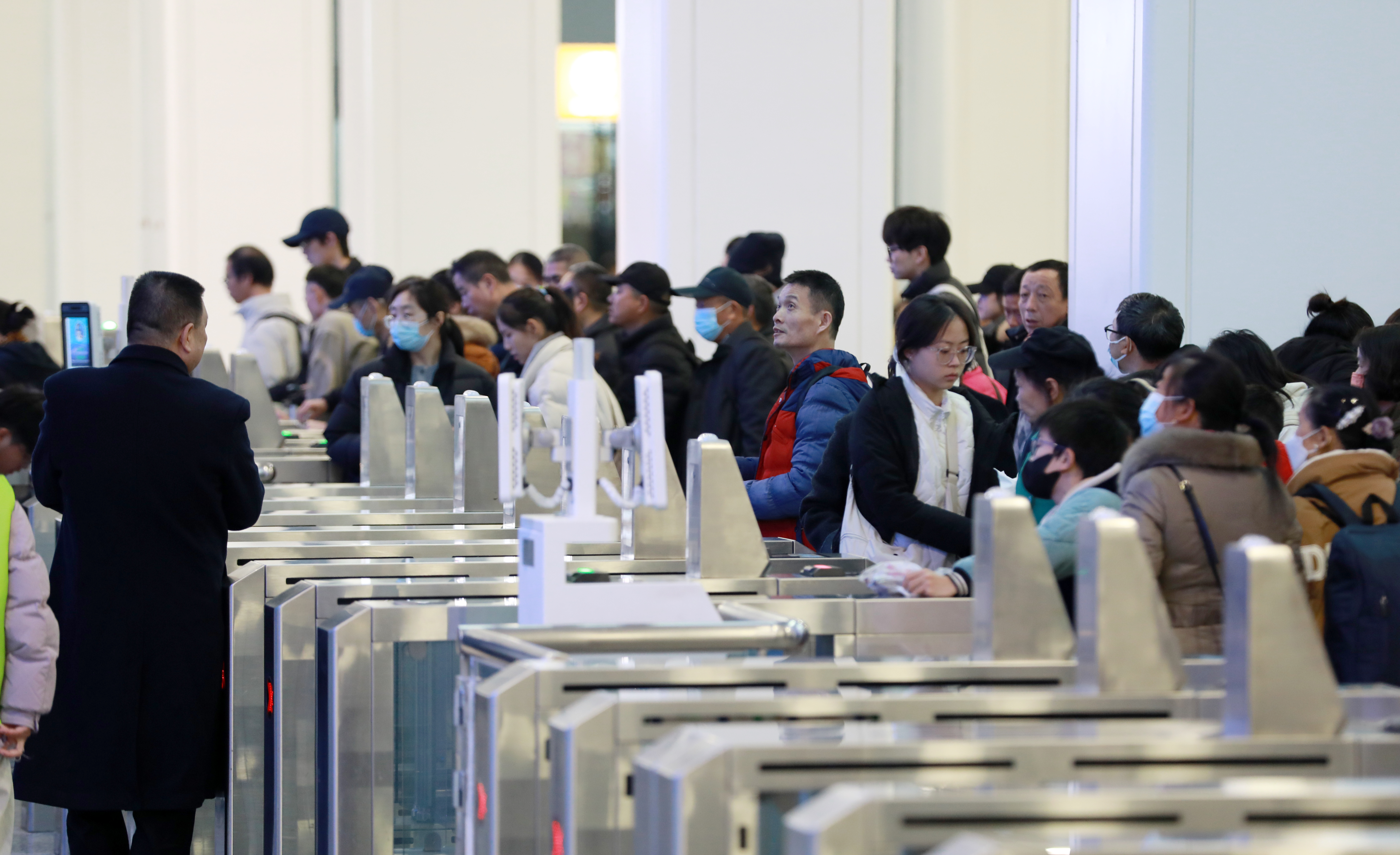 旅客有序进站。(九江日报全媒记者 杨罗军 摄)