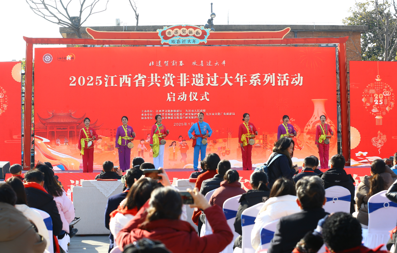 九江新闻网讯(九江日报全媒记者 洪永林/文 欧阳海员/摄)“有过年的味道,我们一家子早早就来赶来了,这样的非遗集市,真喜庆!”1月18日,九动梦工厂洋溢着热闹喜庆的节日氛围,2025江西省共赏非遗过大年系列活动主会场在这里拉开帷幕,采莲船灯舞起来、丝弦锣鼓敲起来,龙腾狮跃跳起来……现场人潮涌动、热闹非凡。