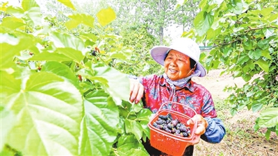 桑葚园是该村集体产业之一,不仅带动了乡村旅游热,更成为村民家门口的“致富引擎”。该村党支部书记从云霞说:“截至目前,桑葚产量达2600多斤,预计产值可达6万多元。”村民陈采芝说:“我在桑葚园里做事,离家近,每天有100多元收入,挺好的。”
