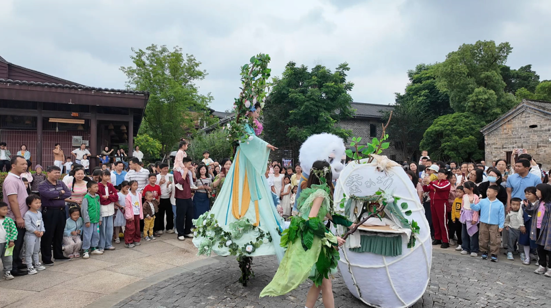 哈珀剧团负责人刘恒瑞:“来到现场后,我们感受到浓厚的艺术氛围,演出也收获了许多小朋友和游客的喜爱。此次带来的剧目《蚕旅》,创作灵感源于浙江寒山一带的传统蚕花节。我们以蚕花娘娘、精灵、蚕宝宝等元素设计角色,希望通过演出让游客在欢乐中了解中国传统节日文化。”