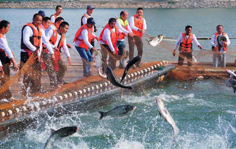 江西省武宁县举办 的 2024 江西武宁(庐 山西海水域)渔文化 暨秋季捕捞活动现场 (2024年11月9日摄) 周密摄 / 本刊