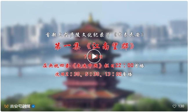 庐陵古韵悠悠,千年文脉绵延。7月28日起,由我市精心打造的五集大型庐陵文化纪录片《吉泰民安》,在中央广播电视总台中文国际频道(CCTV-4)22:00首播,为全球观众徐徐铺展一幅庐陵文化的壮美画卷。