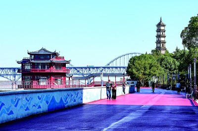 待说书结束,听众心满意足地登楼眺望江景。琵琶亭、浔阳楼、锁江楼、浔阳江号游轮、98抗洪展陈馆……长江国家文化公园九江城区段将它们串珠成链,成为市民的休闲地、游人的打卡地。长江国家文化公园九江城区段项目现场负责人黄庆介绍,该区段三期项目将通过特色街区的打造,再现九江重要航运码头和老工业基地的发展脉络,为市民、游客提供开阔的集散空间,实现从“临江不见江”到“近水又亲水”的转变。