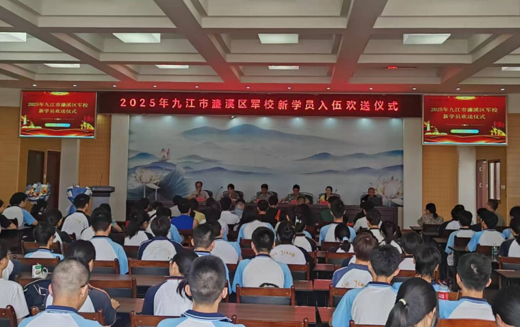 九江新闻网讯(周翔)8月7日上午,濂溪区2025年军校学员入学欢送仪式在濂溪区第一中学十楼学术报告厅举行。区委常委、区人武部上校部长周裔卯,区人武部上校政治委员周勇敢,区退役军人事务局局长王菊芬,区教育体育局党委委员、教师发展中心主任周秀丽等出席仪式,2025届高三教师代表、学生代表、家长代表及2026届高三学生代表参与活动,共同为考入国防科技大学的周会杰同学和考入陆军步兵学院的留伟同学壮行。