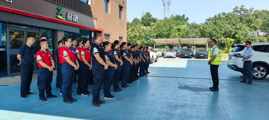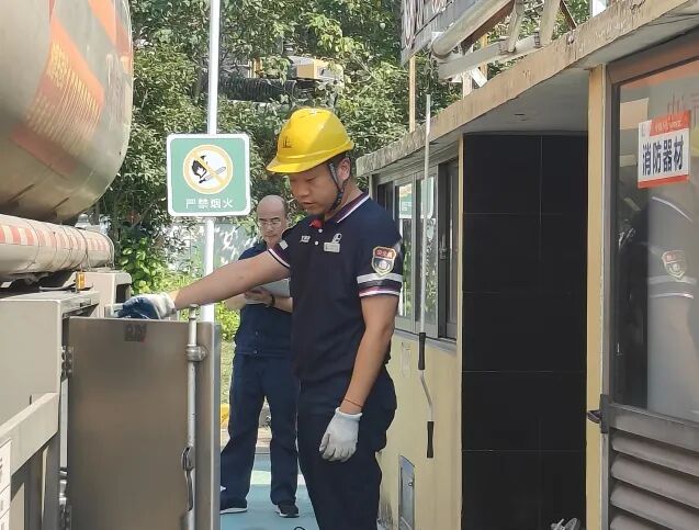 加能站经理开展油品接卸考核。“油罐车停靠指定位置!”“开始稳油5分钟”“地罐安全容量22000升”……考试现场,严肃认真,站经理通过手指口述,进一步提升操作技能。
