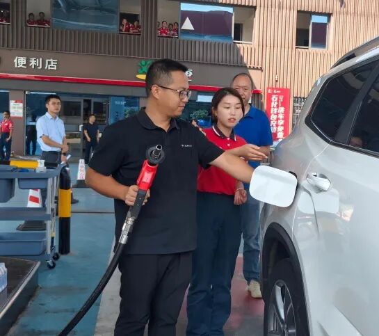 “请您先消除人体静电”“请您提枪”“请核对油品”……营业员积极主动协助客户完成自助加油,进一步提升对客户服务标准化流程运用能力。