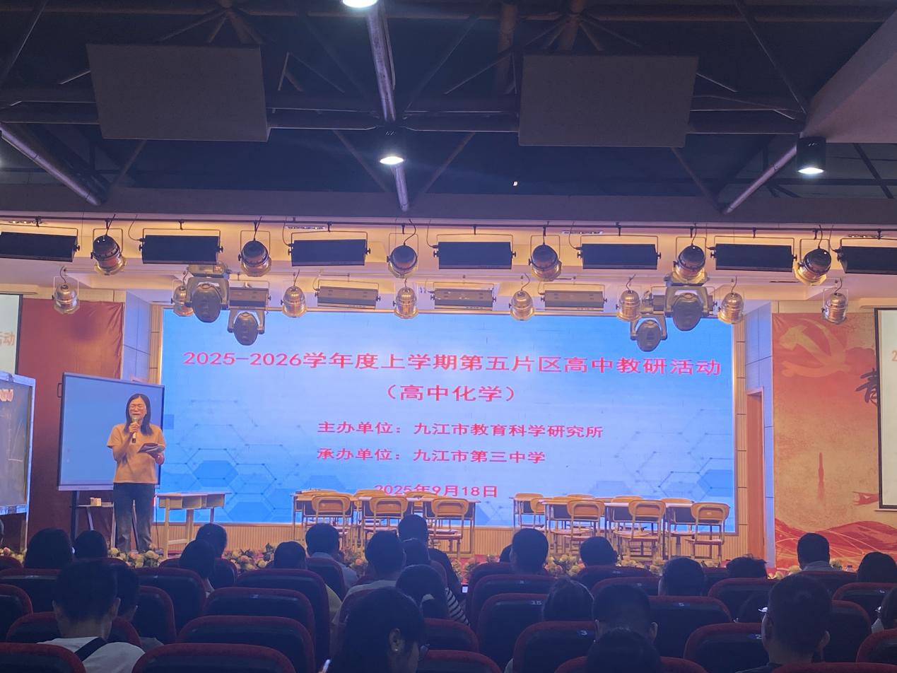 九江新闻网讯(黄梦)9月18日上午,九江市2025-2026学年度上学期第五片区高中化学学科教研活动在九江三中科技楼六楼多媒体教室成功举行。来自全市各县区的高中化学教师170余人齐聚一堂,共探教学提质新路径,活动由九江市高中化学教研员方晴主持。