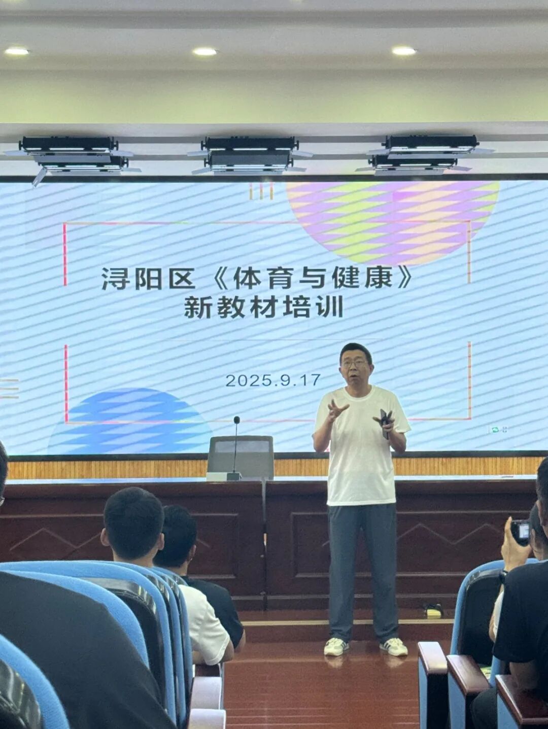 在培训结束之际,浔阳区体育教研室李晓主任对本次培训活动进行了总结发言,他对李老师的交流分享给予了高度评价,认为此次分享的内容不仅具有开阔的理论视野,更体现出扎实的课堂实践深度,精准聚焦课程理解与教材执行两大关键环节,为全区体育教师提供了极具操作性和推广价值的宝贵经验。同时,他也对在场老师给予了高度的期望,希望在场体育老师们带着培训的收获与思考,把新教材的精髓落实到课堂当中,为学生的健康成长筑牢根基;深入理解教材内涵,将理论与实践相结合,勇于开展课堂创新,不断加强校际交流与合作,致力打造高质量体育课堂,助力每一位体育教师卓越发展。