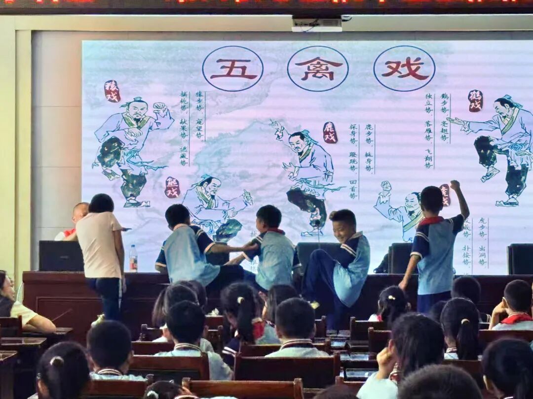 活动中,医务科副科长刘飙以《名医故里学名医》为题,用通俗易懂的语言,以中医药的起源和发展为脉络,结合历代名医典故,将“名医故里”的文化底蕴与中医药的深厚智慧巧妙融合,为同学们讲述中医药在日常生活中的应用。在教学互动环节,同学们还一招一式、有模有样地学习“五禽戏”,现场气氛轻松活泼、趣味横生。