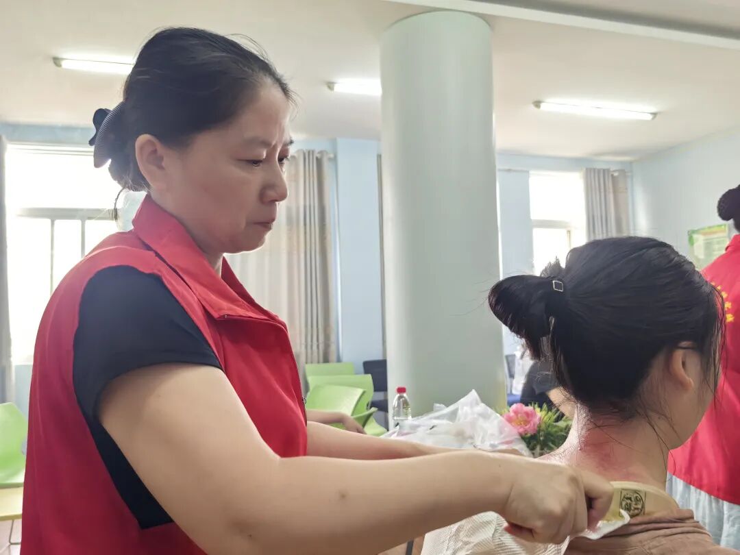 与此同时,针对教师的职业特点和健康需求,志愿者还义务为在校老师施行艾灸、火龙罐、铜砭刮痧、推拿等中医特色疗法,用专业的技术为老师们舒缓疲劳、消除不适,积极倡导中医药“治未病”的健康理念。