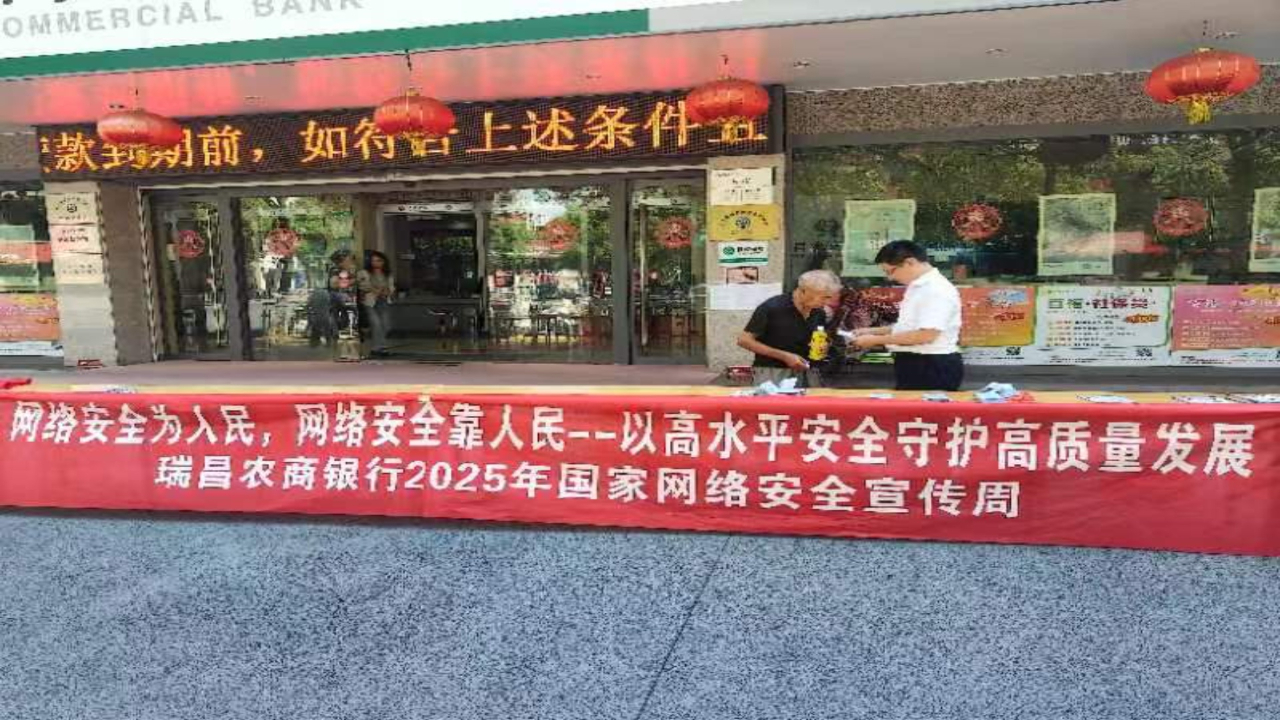 9月15日瑞昌农商银行总行营业部门口宣传网络安全