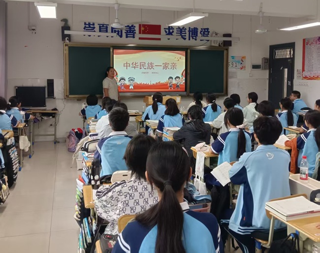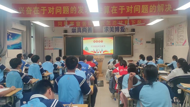 九江新闻网讯(谭茜)9月19日,九江三中组织开展了“中华民族一家亲”主题班会活动。