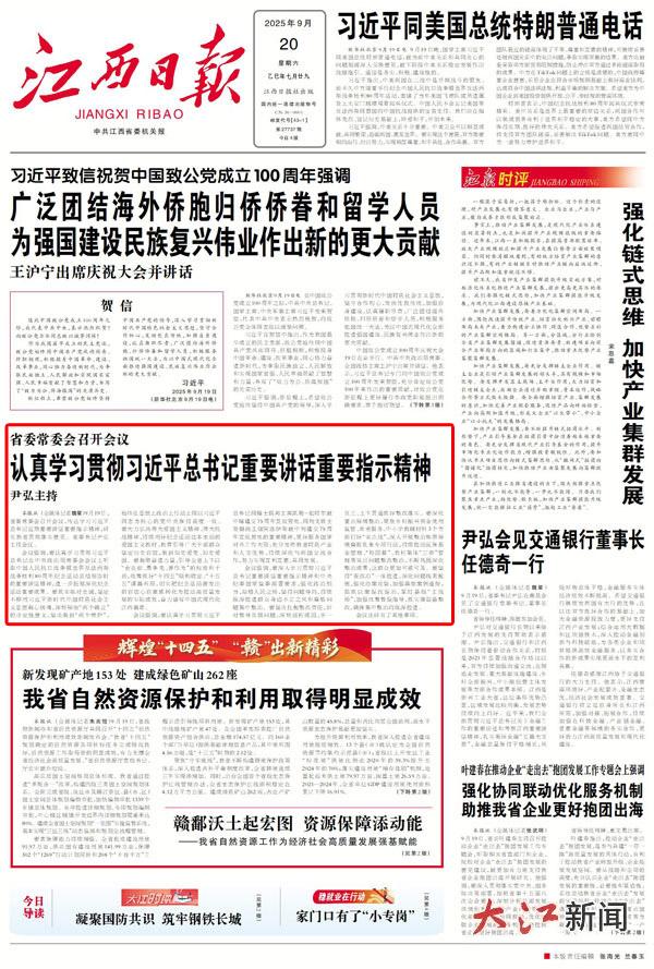 大江新闻讯 江西日报全媒体记者魏星报道:9月19日,省委常委会召开会议,传达学习习近平总书记近期重要讲话重要指示精神,研究我省贯彻落实意见。省委书记尹弘主持会议。