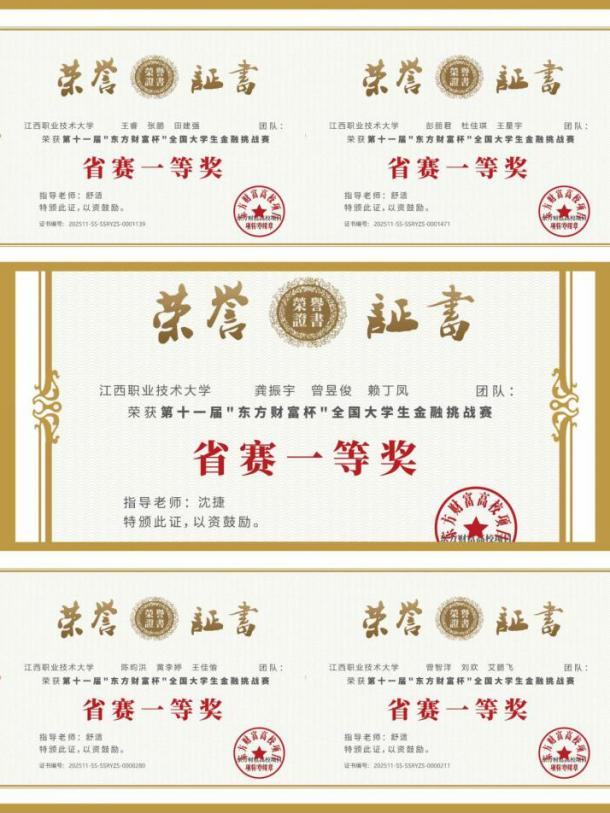 九江新闻网讯 近日,第十一届“东方财富杯”全国大学生金融挑战赛圆满落幕。江西职业技术大学学子以优异表现斩获国家级一等奖2项、二等奖2项、三等奖1项,以及省级一等奖5项、二等奖4项、三等奖8项,共获省级以上奖项22项,获奖数量与质量均创历史新高。
