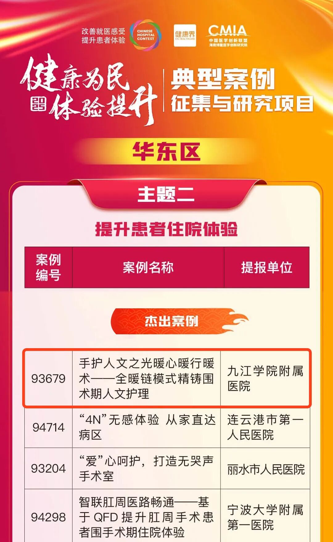 喜讯!领跑区域人文护理 九江学院附属医院案例获华东区“提升患者体验”杰出案例第一名