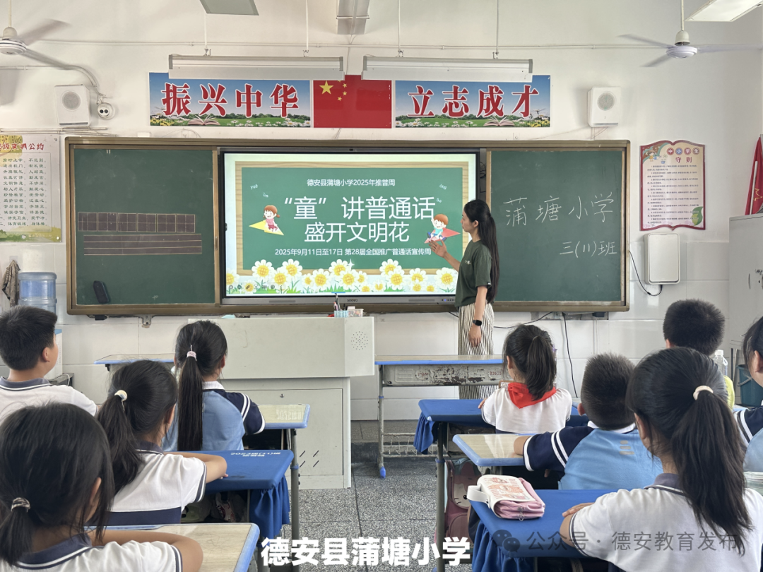 九江新闻网讯(王静 李玉萍)为大力推广和规范使用国家通用语言文字,自觉传承弘扬中华优秀传统文化,2025年9月15日-21日,德安县教体局紧紧围绕“推广普通话,奋进新征程”主题,精心组织、广泛动员,在全县各中小学、幼儿园成功举办了第28届全国推广普通话宣传周系列宣传活动,为提升广大师生及市民语言文化素养和社会氛围注入了新的活力,在全县营造了学习使用国家通用语言文字的浓厚氛围。