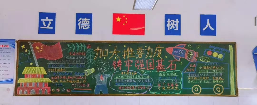 各班级还利用班队会组织开展了以推普为主题的班队会。同时在本周还要开展了“啄木鸟”在行动纠错字、推广普通话黑板报等活动,通过系列活动发动学生运用在学校所学的汉语拼音知识纠正家庭成员存在的发音、方言及不正确的用字现象。