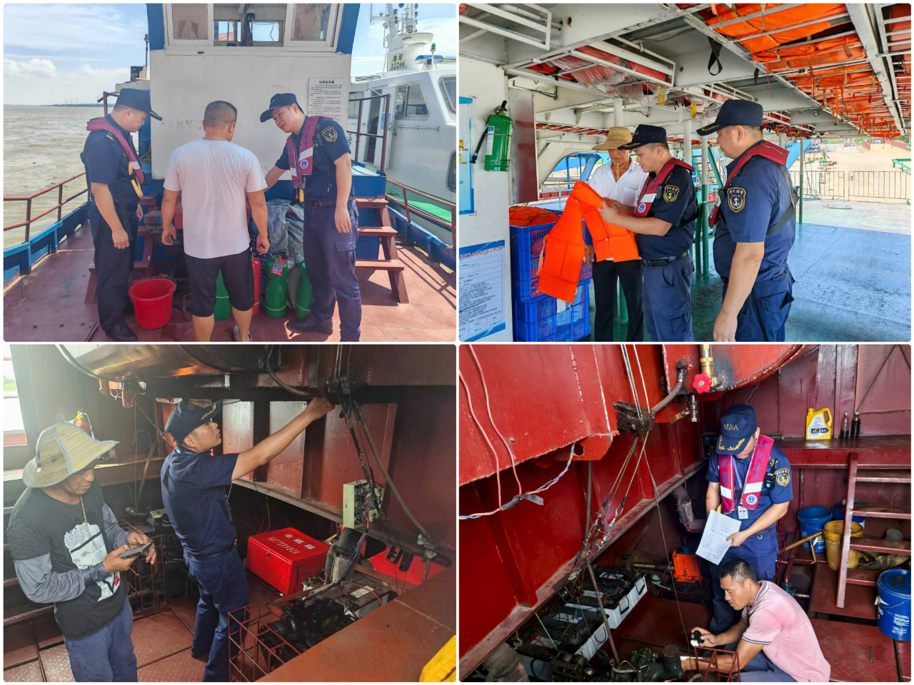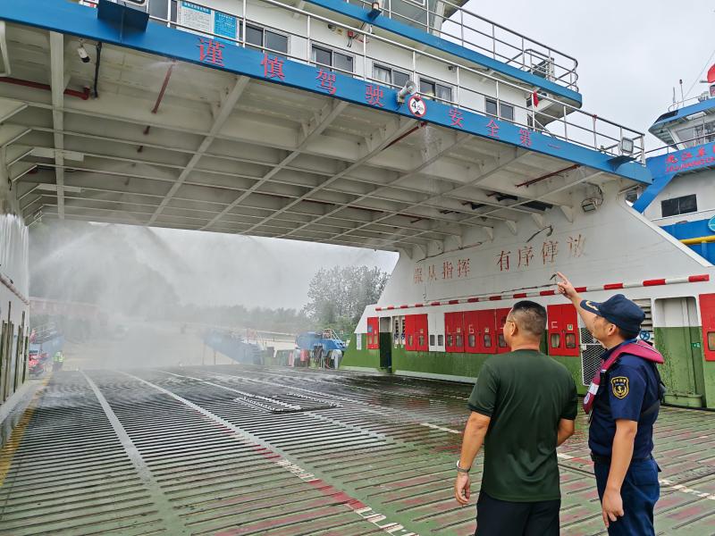 9月11日起,执法人员重点检查辖区正在运营的6艘渡船操舵装置、救生消防等设备设施情况和船员履职能力,全面排查渡船存在的安全隐患,针对检查中发现的问题,督促村委、渡运公司落实安全主体责任,立行立改,有力保障渡船不“带病”投入营运。