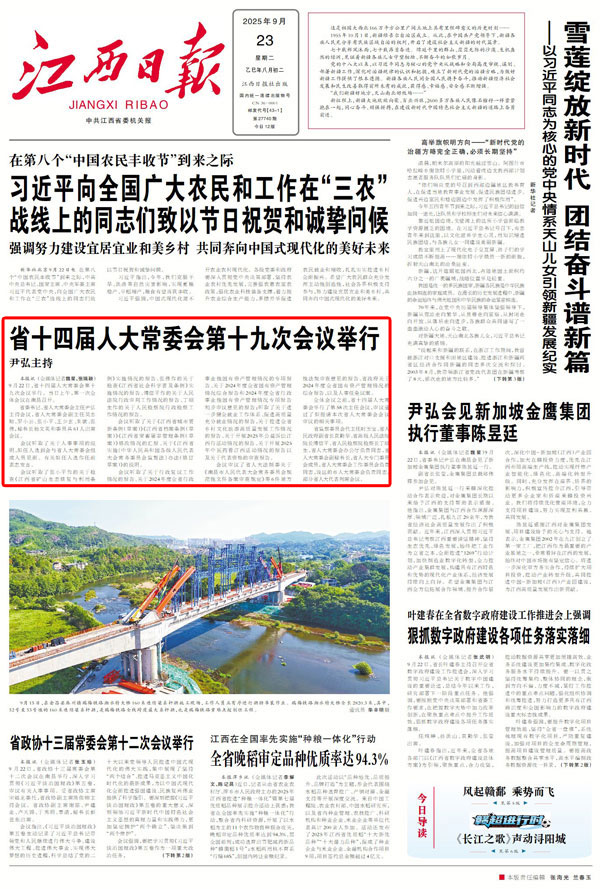 大江新闻讯 江西日报全媒体记者魏星、张瑞颖报道:9月22日,省十四届人大常委会第十九次会议举行。当日上午,第一次全体会议在南昌召开。