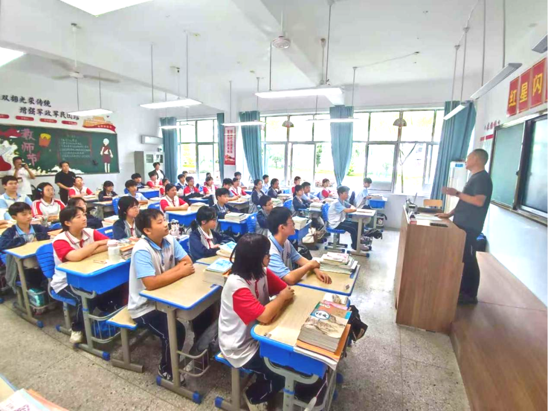 九江新闻网讯(朱利)2025年9月22日,德安县第三中学红星班红色教育课如期开展,德安县彭山公益林场彭山村党支部书记宋增樟受邀主讲。班主任简要介绍了这位嘉宾:1974年出生的退伍军人宋增樟,退役28年来坚守军人本色,斩获全省退役军人演讲比赛第一名,主动投身乡村振兴,以捐资建文化阵地、支持夕阳基金等实干行动反哺家乡。
