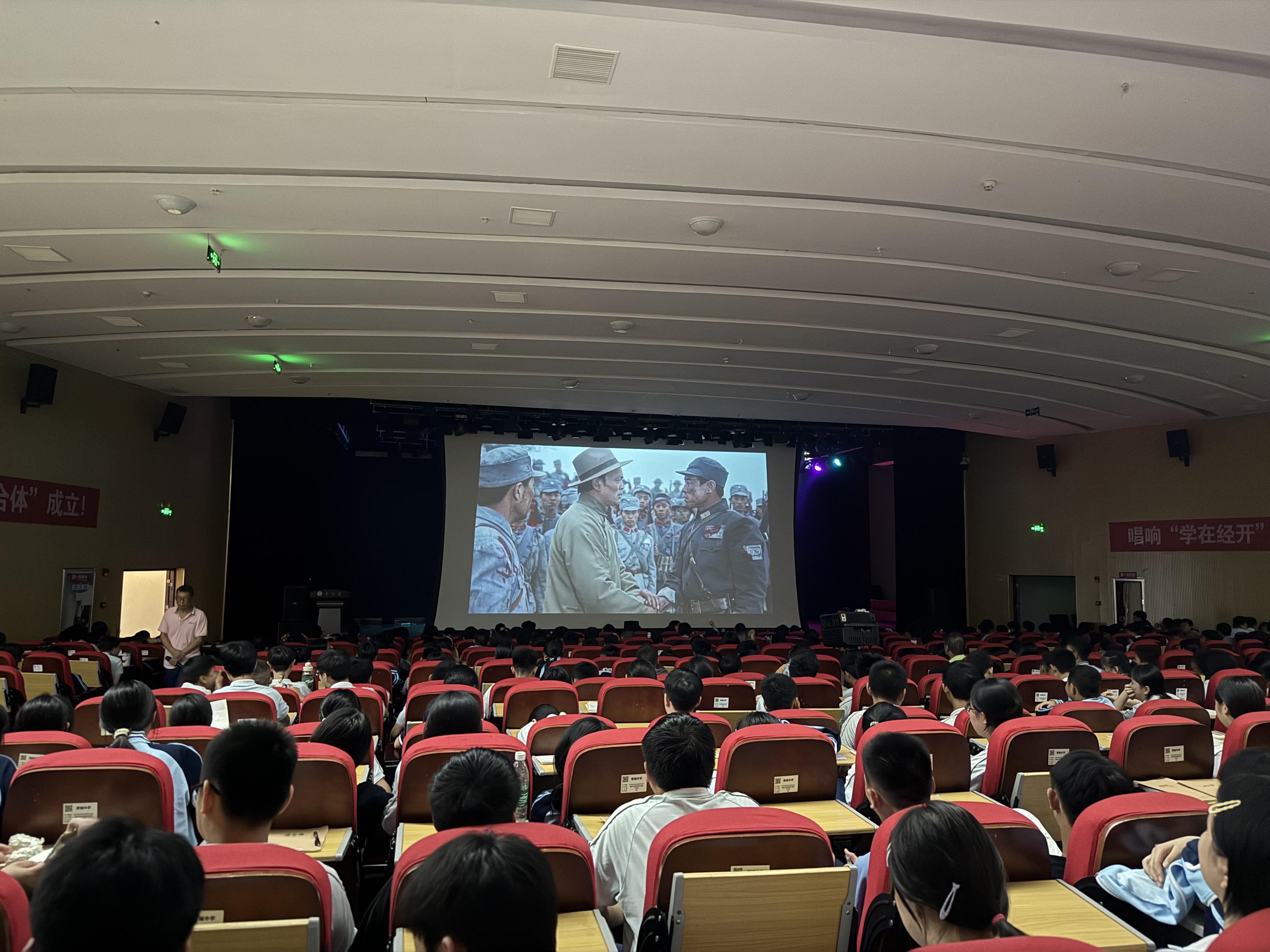 下午两点,观影活动在庄严肃穆的氛围中拉开帷幕。礼堂内座无虚席,同学们井然有序,满怀对历史的敬畏之情。