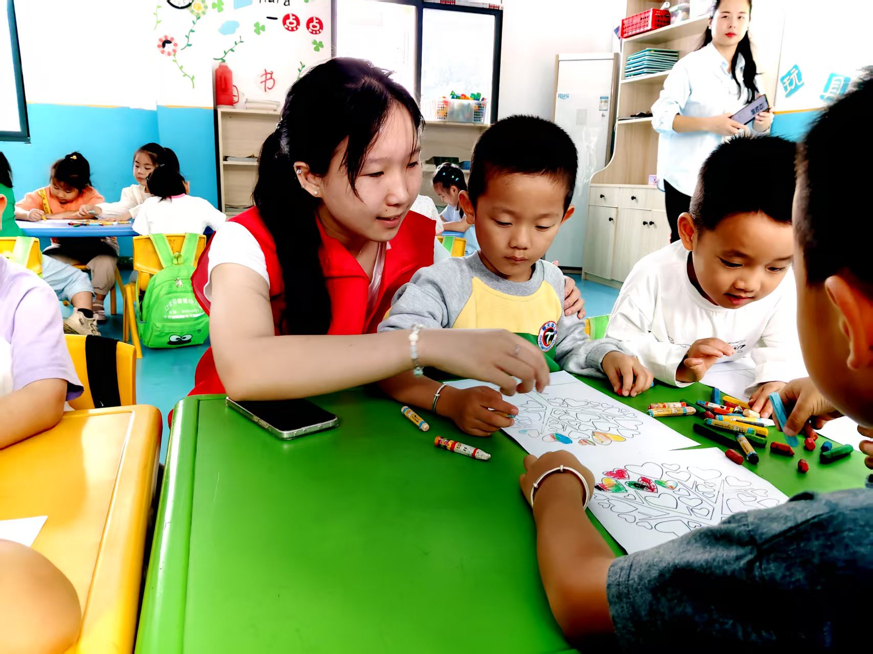 为让孩子们在互动中深化认知,活动设置了趣味问答与绘画环节。班级里,通过简单的问题,引导孩子们主动思考,在欢笑中了解各民族文化;随后,孩子们与志愿者携手拿起蜡笔,共同绘画,一幅幅充满童趣的民族团结画卷跃然纸上,现场温馨又热闹。