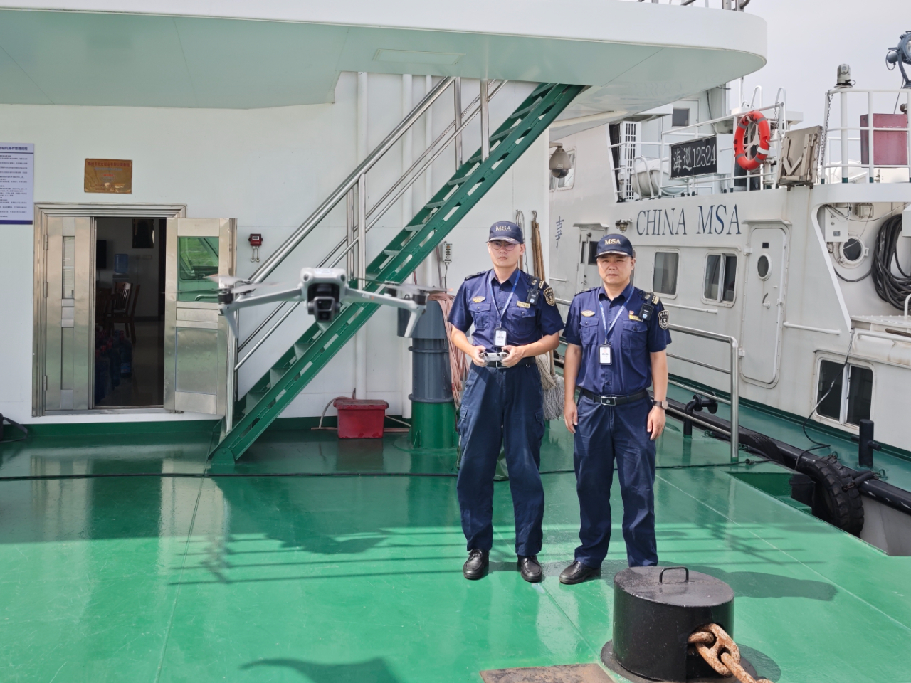 执法人员开展无人机巡航,集中对辖区工程船集中停靠点、枝杈航道等海巡艇不易驶入的水域查看是否存在“三无”船舶、农用船、自用船作业,针对辖区的工程船,执法人员逐条拍照与系统核对船舶信息、船舶证书等,电话点对点提醒船舶负责人密切关注台风,加强恶劣天气值班值守。