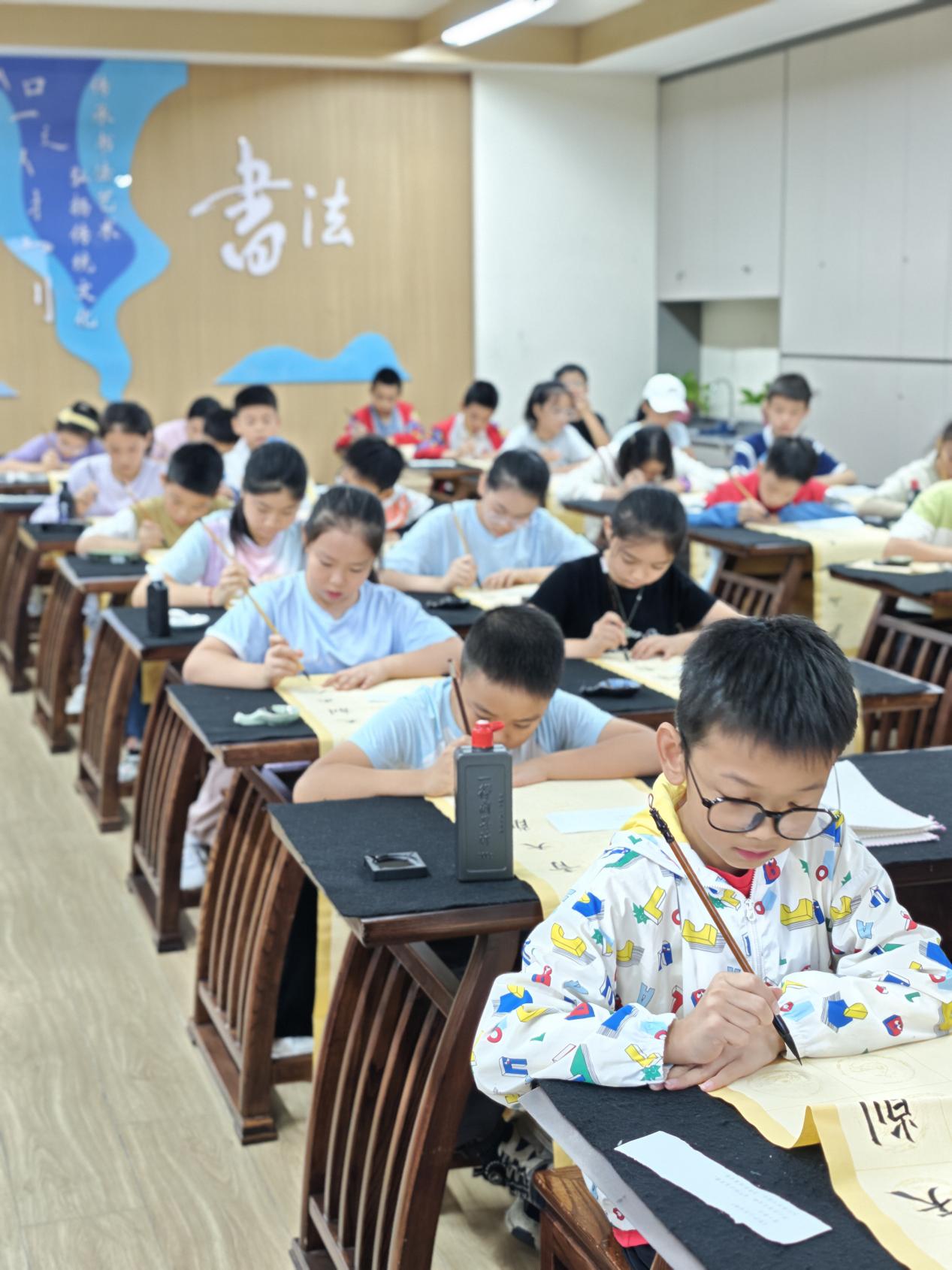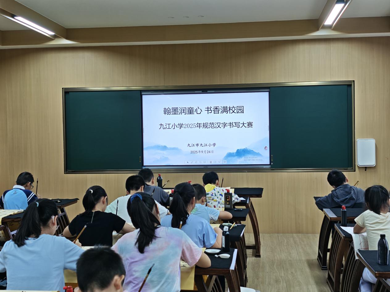 九江新闻网讯(骆逢朝/文 欧阳毅萌 姜炜/图)9月24日上午,“翰墨润童心 书香满校园”九江小学2025年规范汉字书写大赛在甘棠湖、八里湖两校区书法教室同步举行。四至六年级近百名“小小书法家”同台挥毫,在墨香中感受汉字之美。