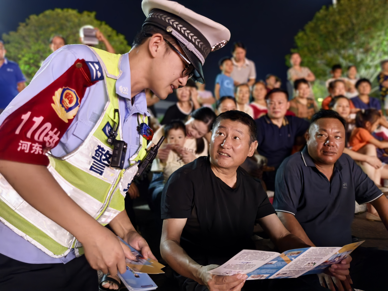 活动中,民警结合农村道路实际情况,用通俗易懂的语言向听戏群众讲解交通安全常识,提醒大家要拒绝乘坐农用车、三轮车,不超员超载、酒后驾驶、疲劳驾驶,骑乘电动车、摩托车要佩戴安全头盔、不逆行、不闯红灯,步行出行时不随意横穿马路、要靠路边行走,时刻都要把交通安全记在心上。并发放交通安全宣传册,呼吁大家遵守道路交通法律法规,自觉抵制交通陋习,共同营造良好的道路交通出行环境。