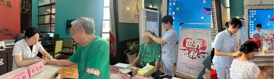 专家团队耐心细致地为前来咨询的群众详细询问身体状况,分析病情病因,解答关于常见病、多发病、慢性病的预防诊治及愈后疑难问题,并根据每个人的健康状况,提供了专业的诊疗建议和个性化的中医调理建议。护理人员为现场居民测量血压、血糖,并开展杵针、艾灸、火龙罐、刮痧等中医特色操作。共接待群众咨询问诊100余人次,完成血压、血糖监测50余人次,提供中医适宜技术体验50余人次。