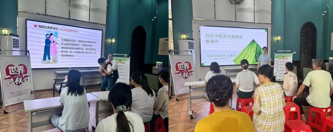 活动中,专家团队为社区居民开展关于气道异物梗阻急救知识科普和抗菌药物小科普讲座,护理团队开展社区中医养生健康宣教主题讲座,详细讲解了四季中医养生指南、社区高发病中医预防及居家实用养生技巧,讲座结束后党员带领社区居民共同练习健康气功八段锦。
