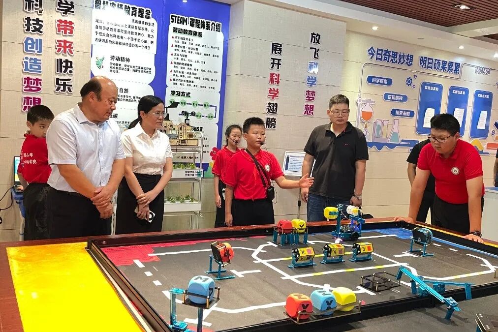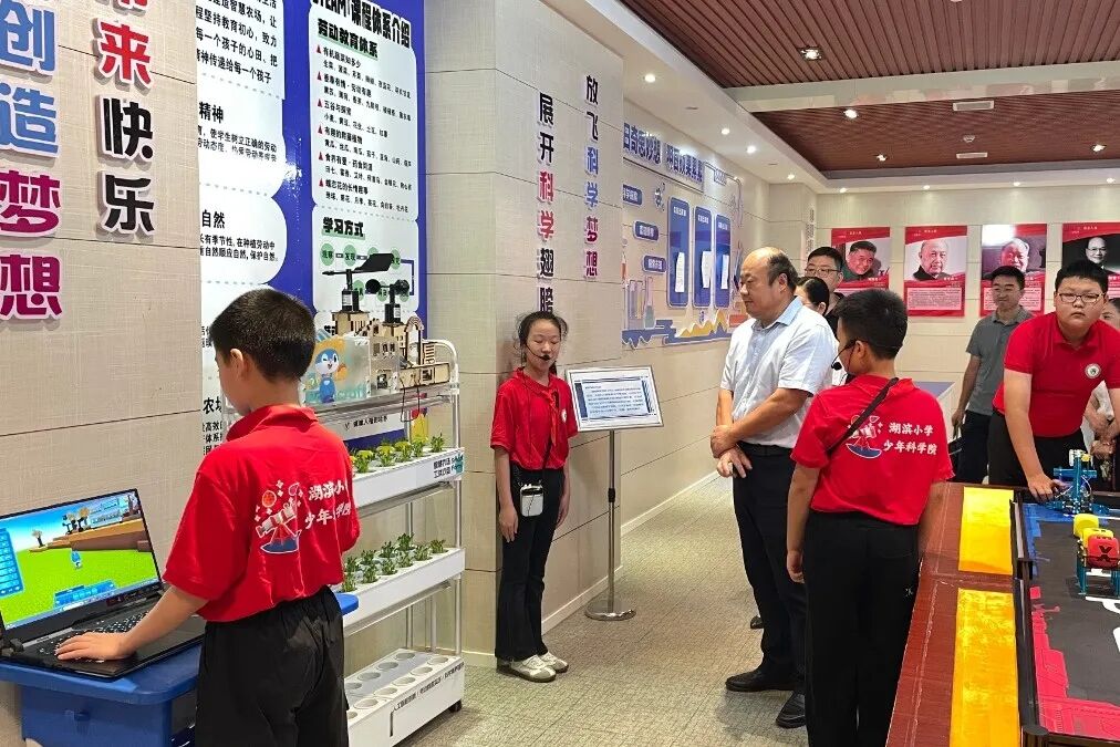 随后,参观了科学综合馆《初心之光》,小小讲解员们绘声绘色地讲解着,湖滨少年科学院的学生们动作娴熟地操作着无人机、机器人、智慧农场......大家对学校扎实而富有特色的科教工作给予了高度评价。