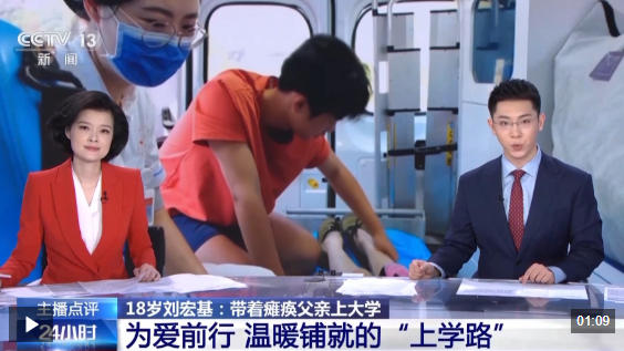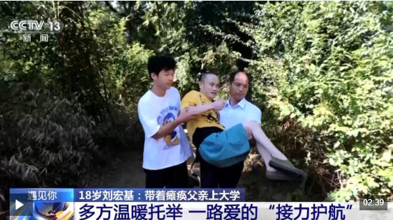 刘宏基:当时我想就是我考上了,我也要带着我爸去上大学,我跟他关系特别亲,而且我觉得这是我的责任,我不可能说自己有一点成就,或者上大学了,就把爸爸送到养老院里面去不管不顾,因为我爸爸以前都是光顾着为了我,我没有为他做点什么,那我就做自己能做的给他就行了。