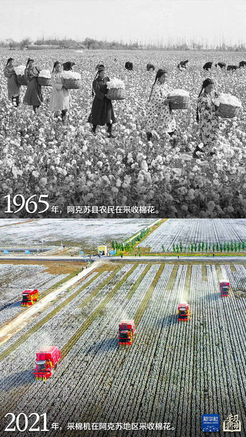 我们选取成就展上的一组照片,通过新旧对比,用鲜活的事实展现新疆取得的辉煌成就,一起感受翻天覆地的发展变化。