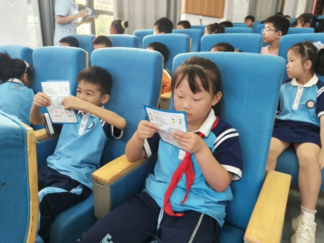 活动现场内容丰富、形式多样。在多媒体教室内,口腔科袁园以通俗易懂的语言搭配生动有趣的图文演示,为二年级学生带来口腔健康知识讲座。讲座围绕龋齿、牙周病的预防及治疗方法展开,不仅现场演示“巴氏刷牙法”的正确操作步骤,还通过互动问答、趣味讲解,重点说明减糖对维护口腔健康、控制体重的重要性,引导孩子们选择健康零食替代糖果饼干。同时,医务人员向学生发放涵盖正确刷牙方法、饮食习惯对口腔健康影响、定期口腔检查重要性的“口腔健康宣传手册”,学生们认真阅读并积极提问,展现出对口腔健康知识的浓厚兴趣。