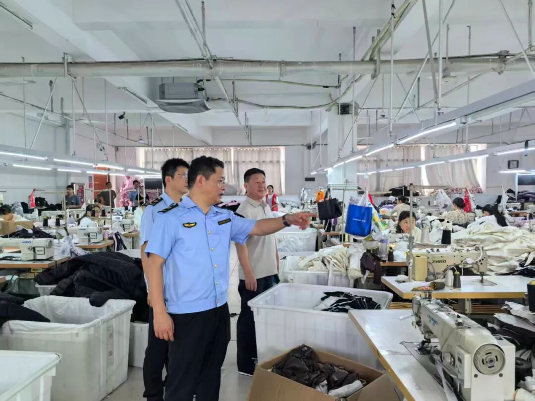 在江西春蕾服饰有限公司,检查组一行重点检查了企业用电安全、消防设施配备、应急逃生通道畅通和“拆牌、破网、清通道”落实等情况,并叮嘱企业规范用火用电,扎实开展好消防安全培训和应急演练,确保员工熟练掌握撤离路线和消防栓、灭火器的使用,提高员工临灾自救互救能力。