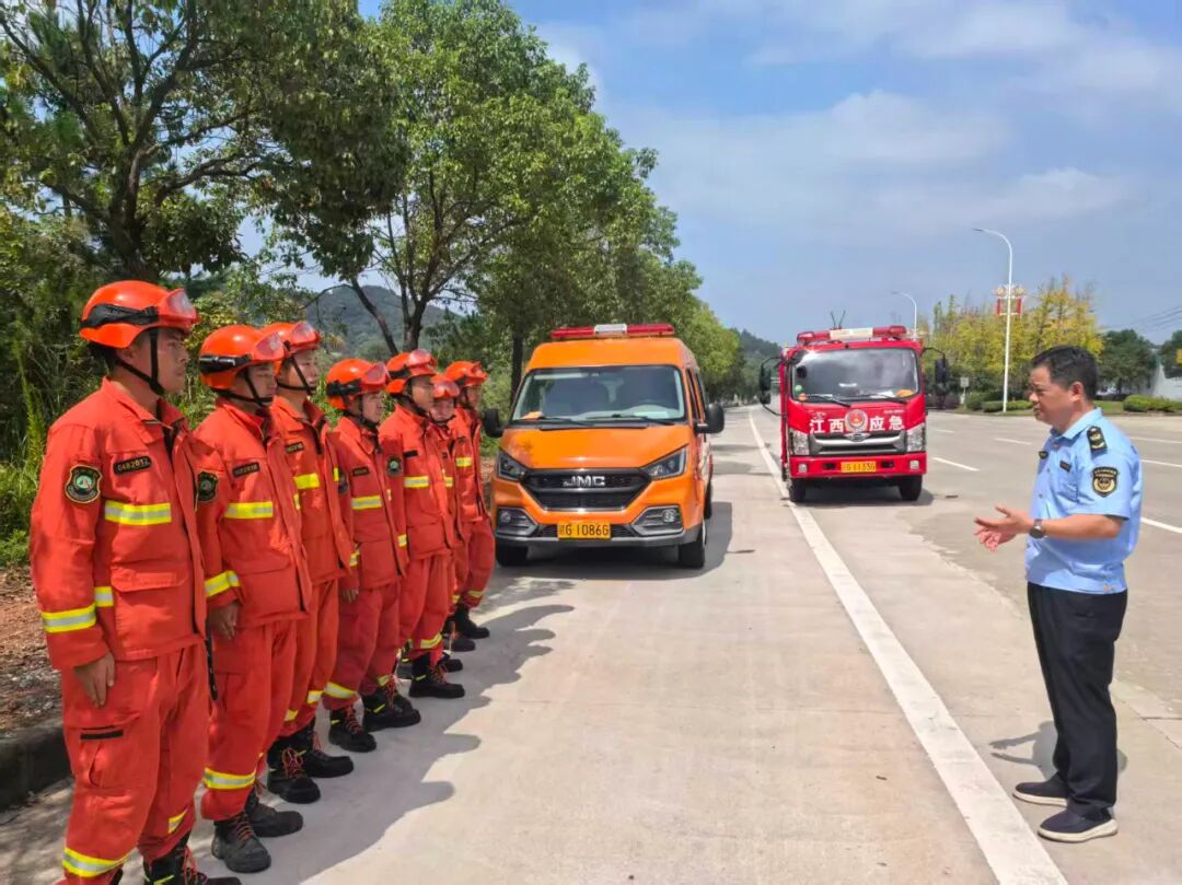 随后,检查组直奔九仙岭森林公园附近,开展森林以水灭火无脚本应急点验,11时51分共青城市专业森林消防大队接到演练指令,12时20分队员携装抵达演练火场,12时48分完成了勘察火场、制定扑救方案、300米长串联水带输水作业、撤离归建等内容,本次点验按照实战化要求,全程不预设脚本、不打招呼,旨在检验扑火队伍训练成效和应急救援能力。