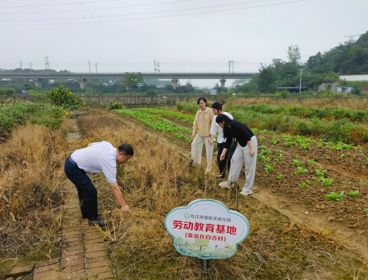 随后,班子成员与驻村干部一行来到幼儿园劳动教育实践基地,实地查看了作物播种及生长态势,就田间管理、预期收成及劳动教育事宜,与驻村干部进行了深入的交流和探讨。