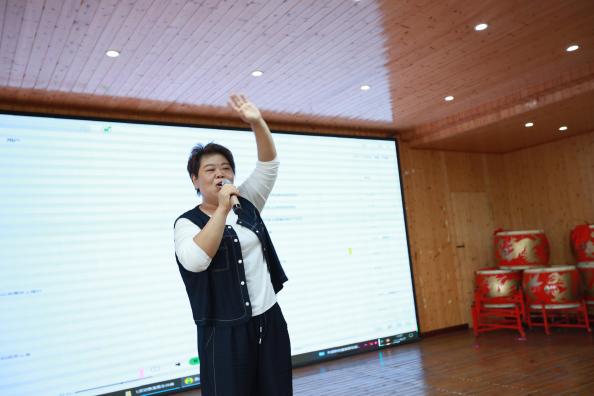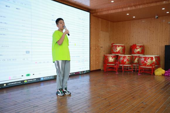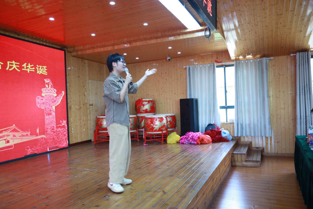 战鼓表演结束后,现场氛围逐渐变得庄重而深情。杨亮独自走上舞台,为大家朗诵《我的祖国》。他洪亮的声音饱含着对祖国的真挚热爱与深深眷恋。从祖国的壮丽山河到辉煌成就,从历史的沧桑岁月到如今的繁荣昌盛,杨亮用自己的方式诉说着对祖国的无限深情,台下观众静静聆听,结束后现场响起了掌声,这掌声既是对杨亮的鼓励,更是对祖国的礼赞。