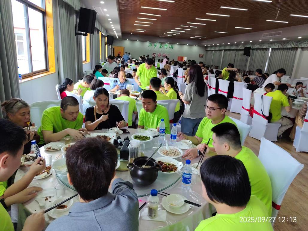 表演活动结束后,大家齐聚一堂,共享温馨的午餐。餐桌上,热气腾腾的饭菜散发着香气,残健人士围坐在一起,亲切交流着活动中的趣事,分享着彼此的心情。一张张笑脸、一句句问候,让整个午餐时光充满了温暖与感动,也让“残健融合”的理念在不经意间深入人心。